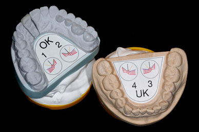 Gestaltung der Kau - und Funktionsflächen unter Berücksichtigung wissenschaftlicher Erkenntnisse. (Gnathologie: Wissenschaft, die sich mit der Physiologie, Pathologie und Anatomie des Kauorgans befasst). Das Kiefergelenk ist das beweglichste Gelenk des menschlichen Körpers. Es ermöglicht nicht nur die Auf und Zubewegung sondern darüber hinaus ein Vor-, Zurück- und Seitwärtsverschieben des Unterkiefers. Jede einzelne dieser Bewegungen muss im Zahnersatz ausreichend berücksichtigt werden, damit Sie damit kauen können wie mit „Ihren Eigenen“.